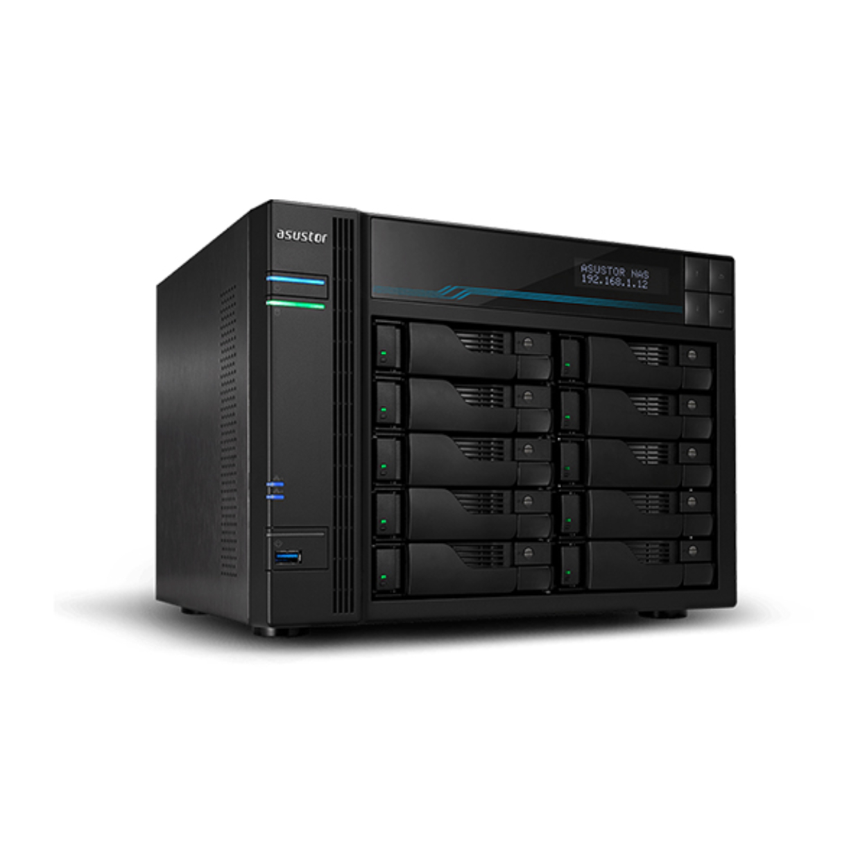 | Özellikler | Asustor AS6510T, güçlü bir NAS depolama sunucusu olup şu özelliklere sahiptir: - İşlemci: Intel Atom C3538 (4 çekirdek, 2.1 GHz) - Bellek: 8 GB DDR4-2133 (Genişletilebilir) - Depolama: 10 adet 3.5" SATA HDD yuvası + 2 adet M.2 NVMe SSD yuvası - Bağlantı: | |